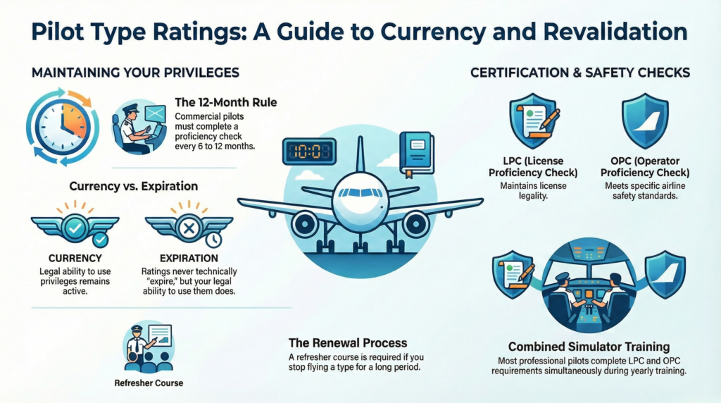 If you stop flying a specific type for a long period, you must go through a “Renewal” process. This usually involves a shorter refresher course at a training center to ensure your skills haven’t gone “stale.”